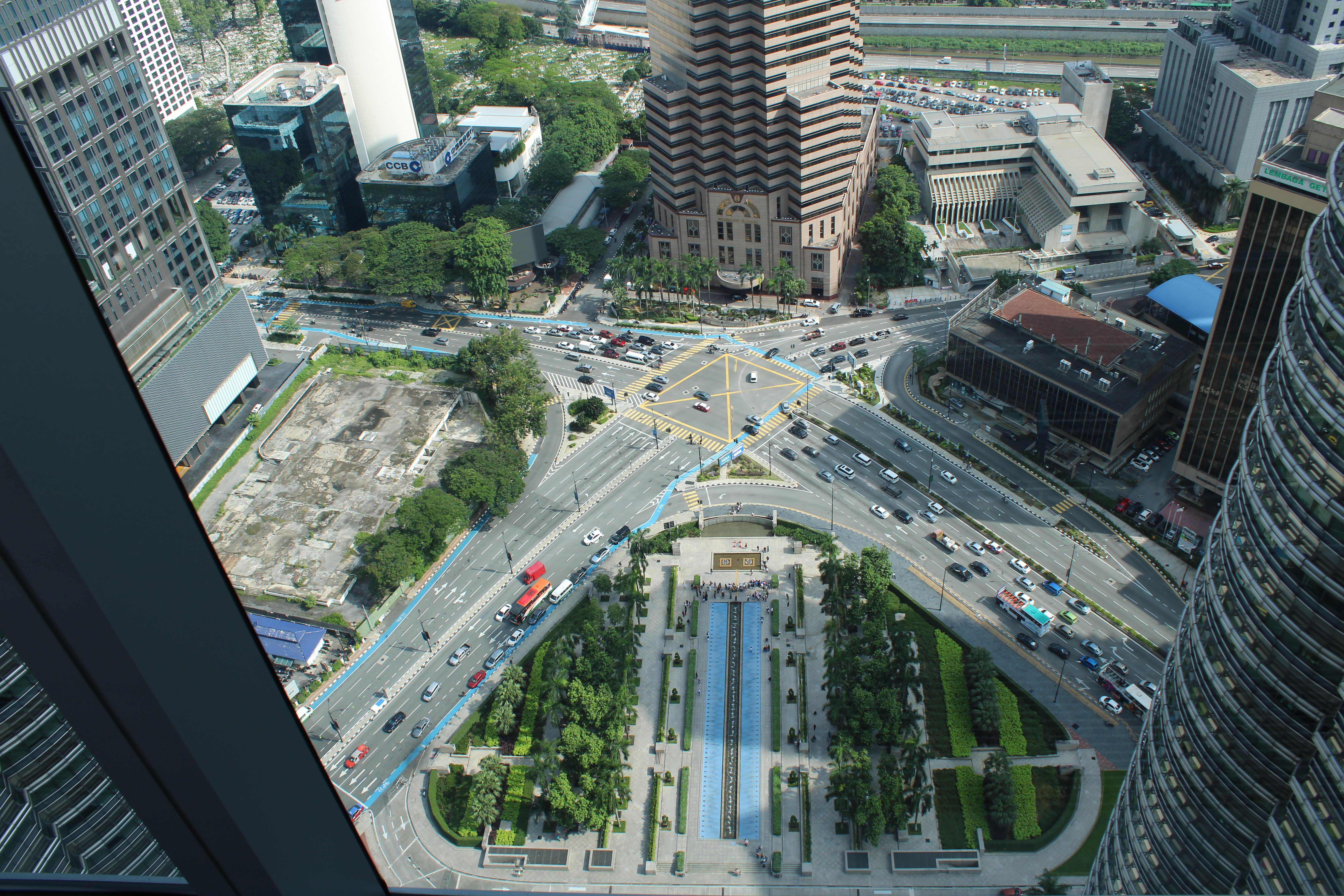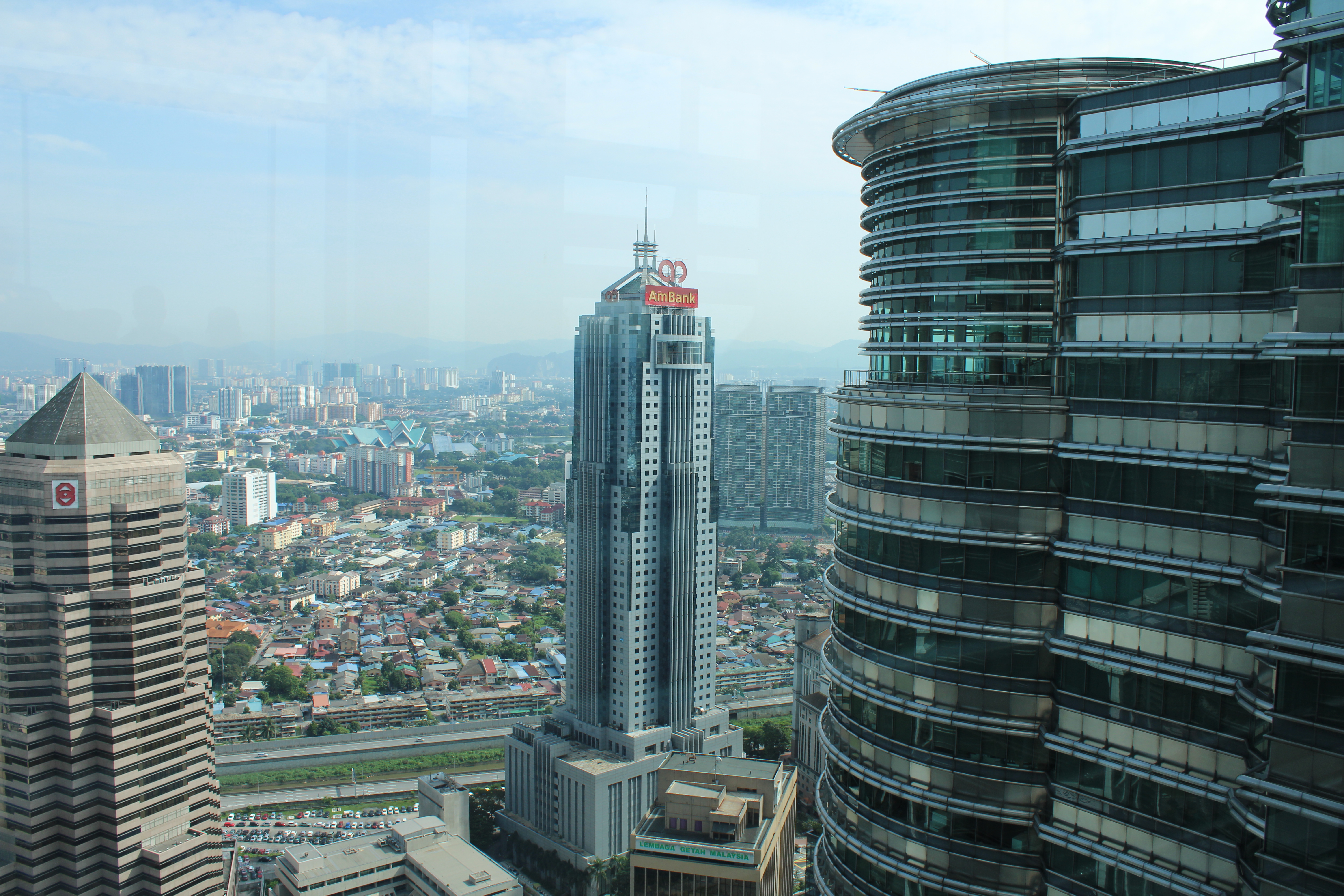Decidimos subir à torres para ter uma vista sobre a cidade e valeu muito a pena, a vista é incrível! Em toda a volta conseguimos ver todos os bairros que circundam as torres, incluindo o bairro Kampung Baru, o mais tradicional da cidade. Aqui os estrangeiros não têm o direito de alugar ou comprar casa e os habitantes parecem parados no tempo com as suas casas de madeira e um estilo de vida que parece não combinar com esta cidade cosmopolita. Não tivemos a oportunidade de passear neste bairro a pé (apenas passámos de autocarro) e será um dos sítios de passagem obrigatória na nossa próxima visita à Malásia.