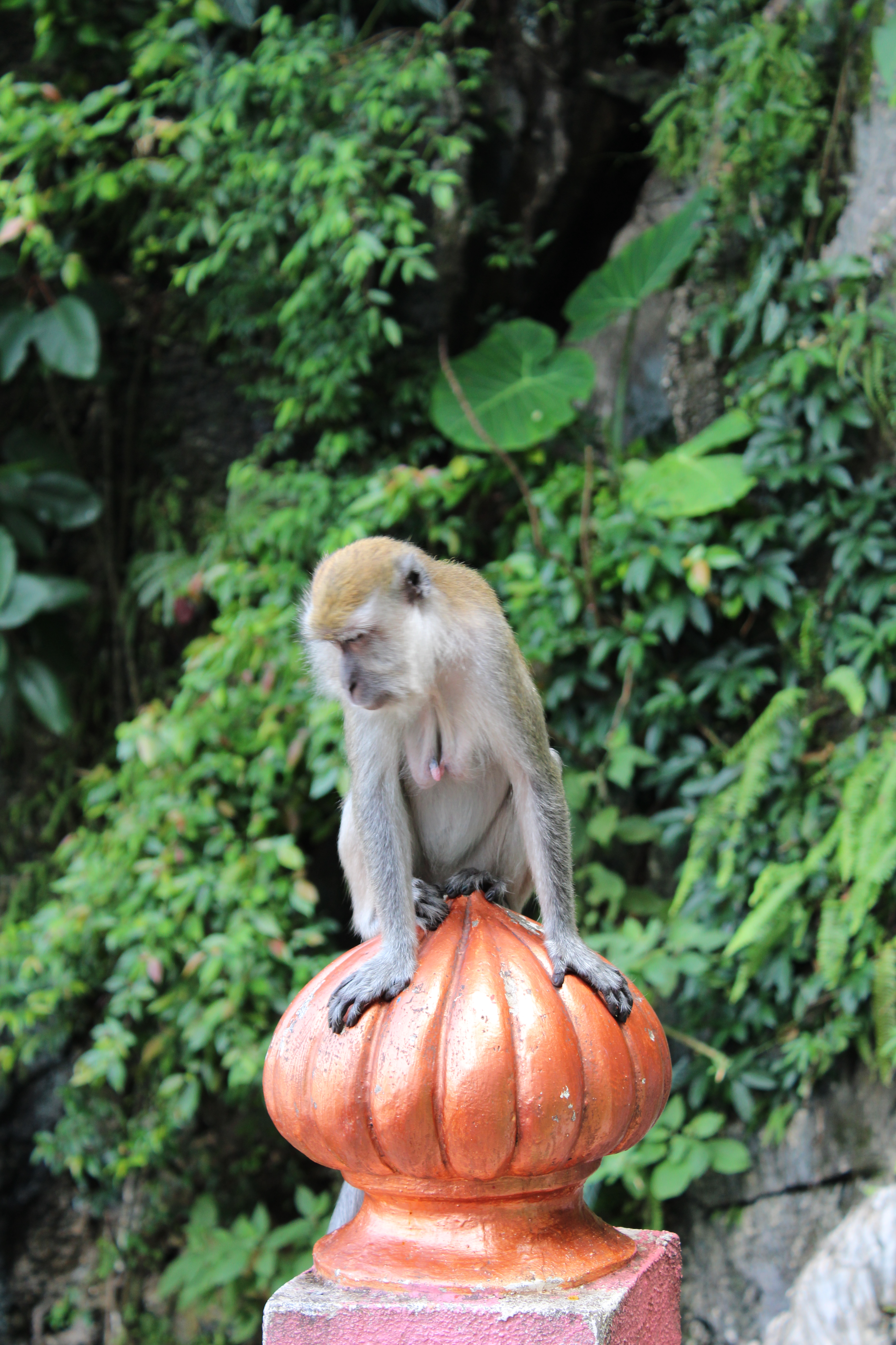 As Batu Caves são realmente muito bonitas com as suas escadas coloridas e a imponente estátua dourada à entrada. No entanto, a enorme quantidade de macacos que havia por todo o lado, principalmente dentro da gruta, deixou-me nervosa. Devido a uma má experiência na minha infância numa visita ao Jardim Zoológico de Lisboa, a minha interacção com macacos não é muito fácil e senti-me tensa durante todo o tempo que estive nas Batu Caves. Talvez por isso não tenha aproveitado bem a visita e apreciado devidamente o local. Já o Alexandre estava maravilhado e adorou conhecer as Batu Caves. No cimo das escadas há um templo dentro da gruta que tem uma atmosfera especial, talvez devido à forma como a luz entra no espaço e à humidade que se faz sentir. Na base das escadas também há outros templos e estátuas que se podem visitar e aí não há macacos, pelo que pude aproveitar o espaço um pouco melhor.